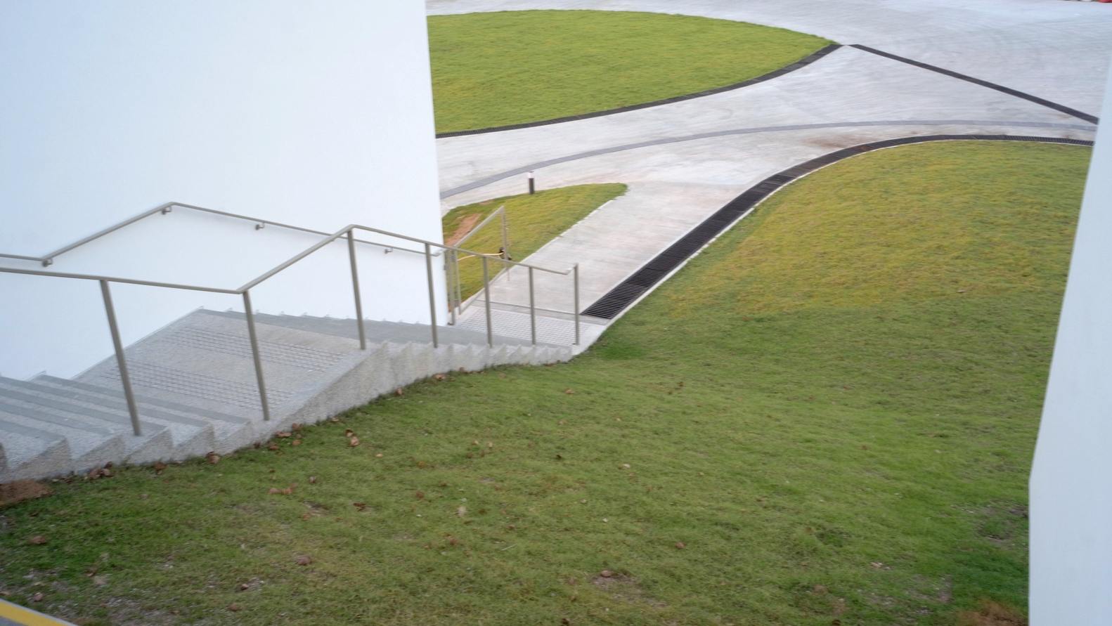 物料方面采用了最普及的简约混凝土建筑,提高了建筑物的建造成本效益及抵御潮湿海风对建筑的侵蚀。整个园景布局将四周的树林与展亭连成一体,此广泛绿化更加强了人工与自然的连系。