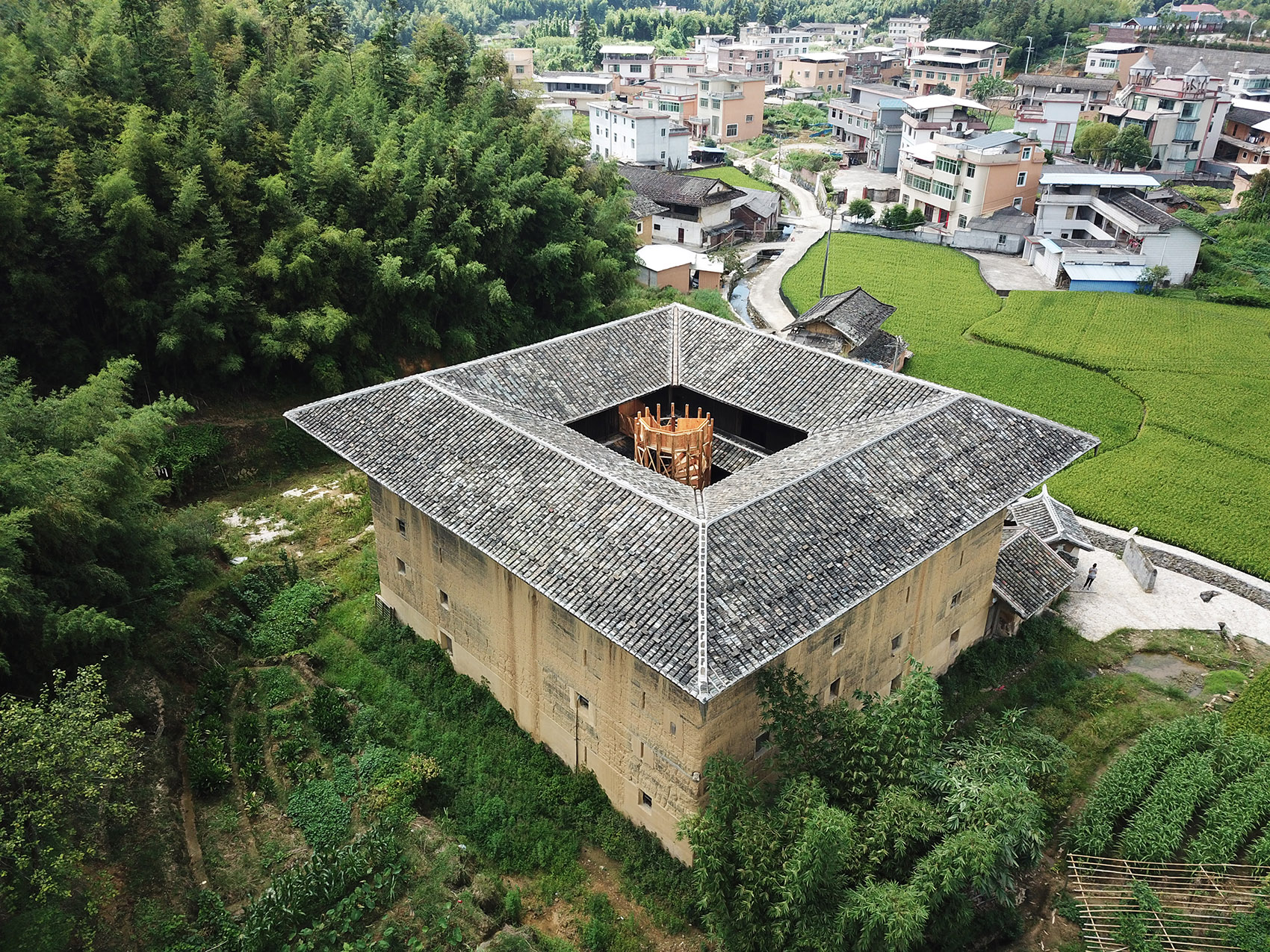 在一千多年前的中国南方,激烈好斗的客家文化催生了大型内向式土制建筑(土楼)的出现。日渐扩增的大家族修建了厚土墙来达到集体防御的目的,并利用建筑中庭,为农耕活动提供了一个共享的开放空间。在传统的土楼中,每一户独立家庭的房间竖向分布,每个房间都可以通向共用的走廊和阳台。因此,土楼中的大量个体空间和集体空间之间建立了一种独特的联系。随着时间的推移,越来越多的土楼点缀在连绵的景观之中,它们之间的新关系也由此建立。尽管土楼已经成为农村集体居住的一种传统形式,但人们开始在土楼中引入不同的空间功能:譬如用以进行宗教活动,或是作为市集及学校。它们体现了一种“原始都市”的状态——集体空间不仅为私人所用,甚至也为公共机构提供场所。