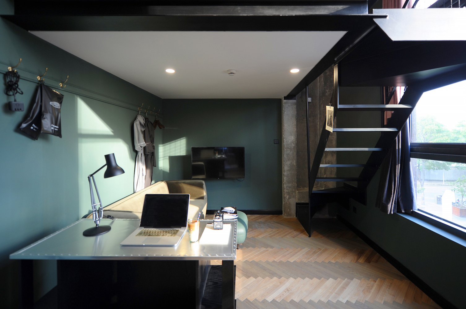 整个15公顷的城市最佳实践区被完全冷落,除了上海当代艺术博物馆一枝独秀之外,没有任何配套设施。有在酒店所在的B4-3栋面临了巨大的挑战。在之前烂尾的二次开发中,原有的B4-3栋15米高的内部大空间被隔成了三层,新的内部混凝土结构完全没有与原有的主体结构进行轴线相对位,且完全脱开,使得后来的有在酒店在设计和改造过程中产生了巨大困难和挑战。我们因地制宜修改了几十稿的平面,因势利导,结果造就了最独有的酒店特色。我们将建筑立面与整个园区的规划风格统一设计,进行了最小的改动,将主入口缩进,在整个区域中以最谦逊的姿态呈现。