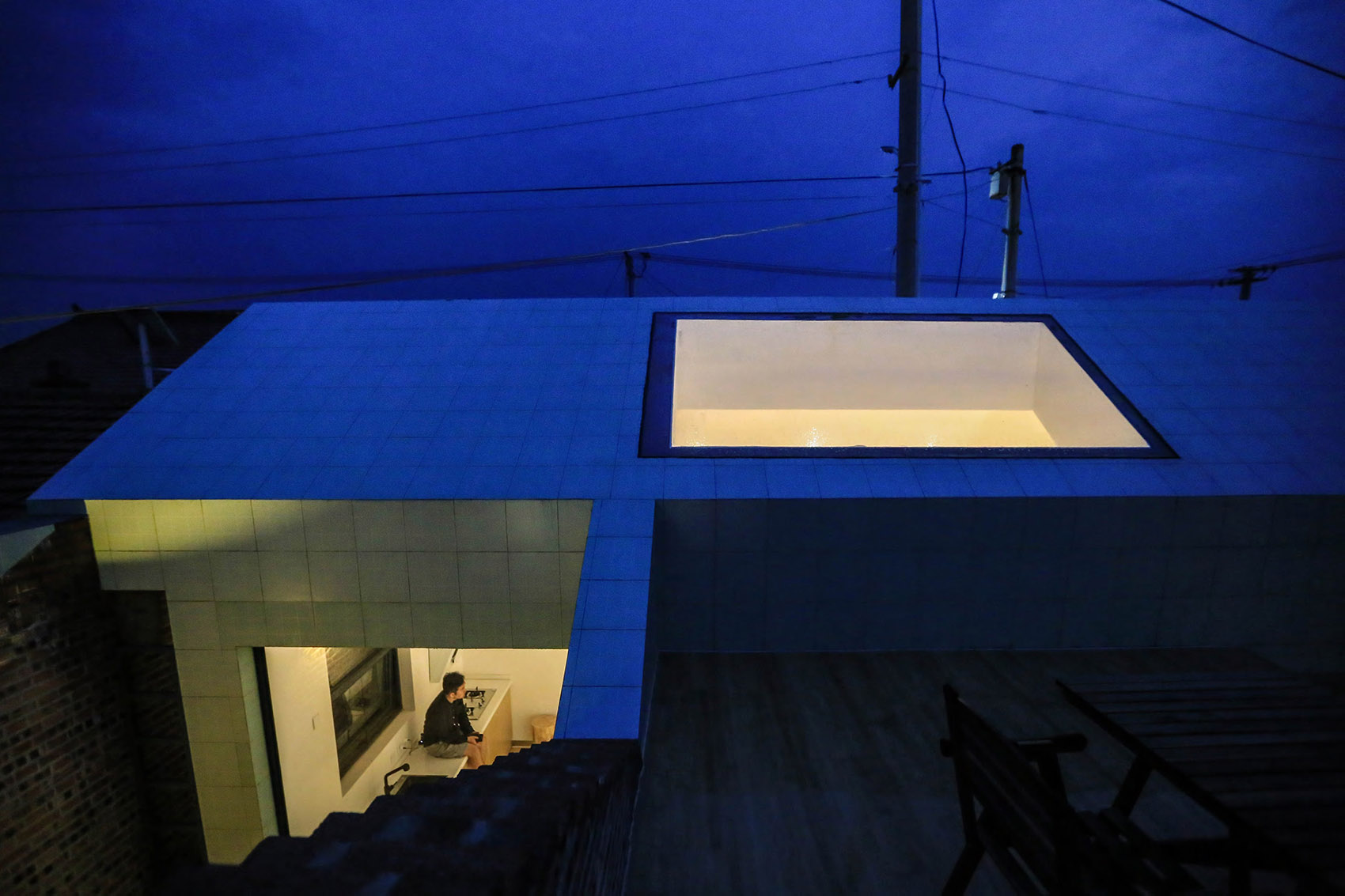 ▼在屋顶唱歌,在夜晚观星;午后的盛阳让瓷砖变为天青色,而在傍晚或是雨中透出冷冷的蓝色调子
