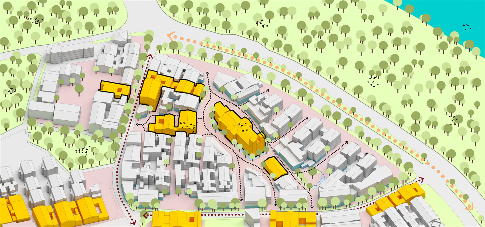 ▼首开区南侧和西南角更新前后对比,Development Area Before and after Renovation ©是然建筑摄影