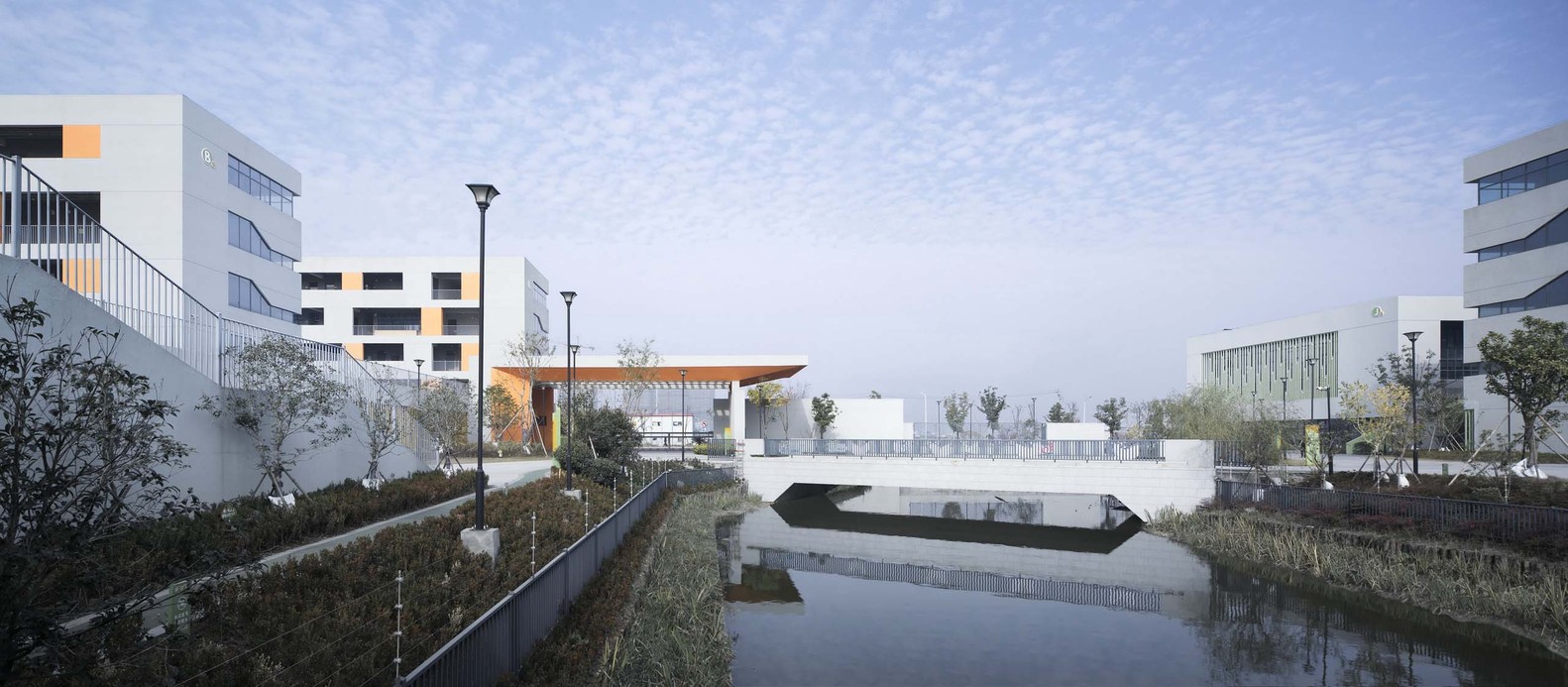 杭州湾新区临于水,生于水,项目用地红线被规划河道一分为二,躲避它还是利用它?成为设计起始阶段重要的抉择。