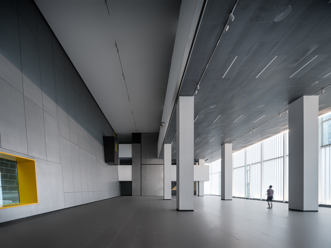 三⽔新城⽂化商业综合体与常规三个关键点与三个创新与突破点。伴随三⽔新城的逐步成型,经由筑博-的城市项⽬⼀样,存在有限的⽤地和⼤规模建设的⽭盾。构思如何控制项⽬的尺度,最⼤限度地将开放空间留给市⺠,延续三⽔的岭南⽂脉,构筑适宜的体量,成为本项⽬的最主要⽬标。为此,团队在项⽬的伊始就拟订下项⽬的联合公设历时5年的设计、配合实施,三⽔⽂化商业综合体⾃2019年7⽉陆续启⽤,以其亲切的亲⽔形象,逐步吸引了周边的居⺠聚集于此,观展、观演、游玩、运动,以⾄于饭后的散步与乘凉。