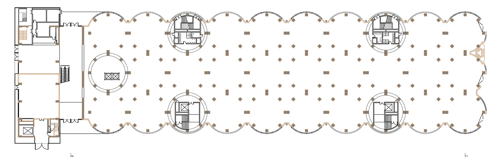 对于这座“巨无霸”的改造,建筑师需要解决三组矛盾:功能置换的矛盾、新旧形式之间的矛盾和封闭空间与公共开放性需求之间的矛盾。