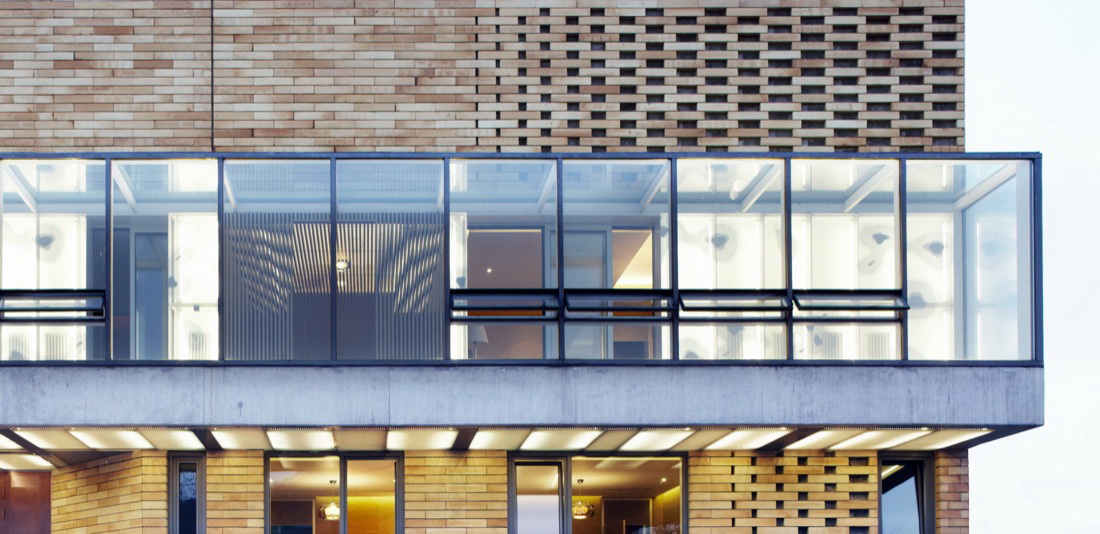 砖表皮:结合东北寒冷地域性格,专为该建筑定做了色彩温暖且有着良好保温性能的600毫米大砖。作为建筑的外维护应该有所表达,试图让这种厚重且粗犷的材料呈现出其原有属性的相反方向。为此,将砖像拉伸的网眼织物结构一样进行垒砌,放眼到整体便形成了建筑的不透明到透明的渐变,获得了新的质感与张力。新的形式与中国传统建筑漏窗形成了通感。