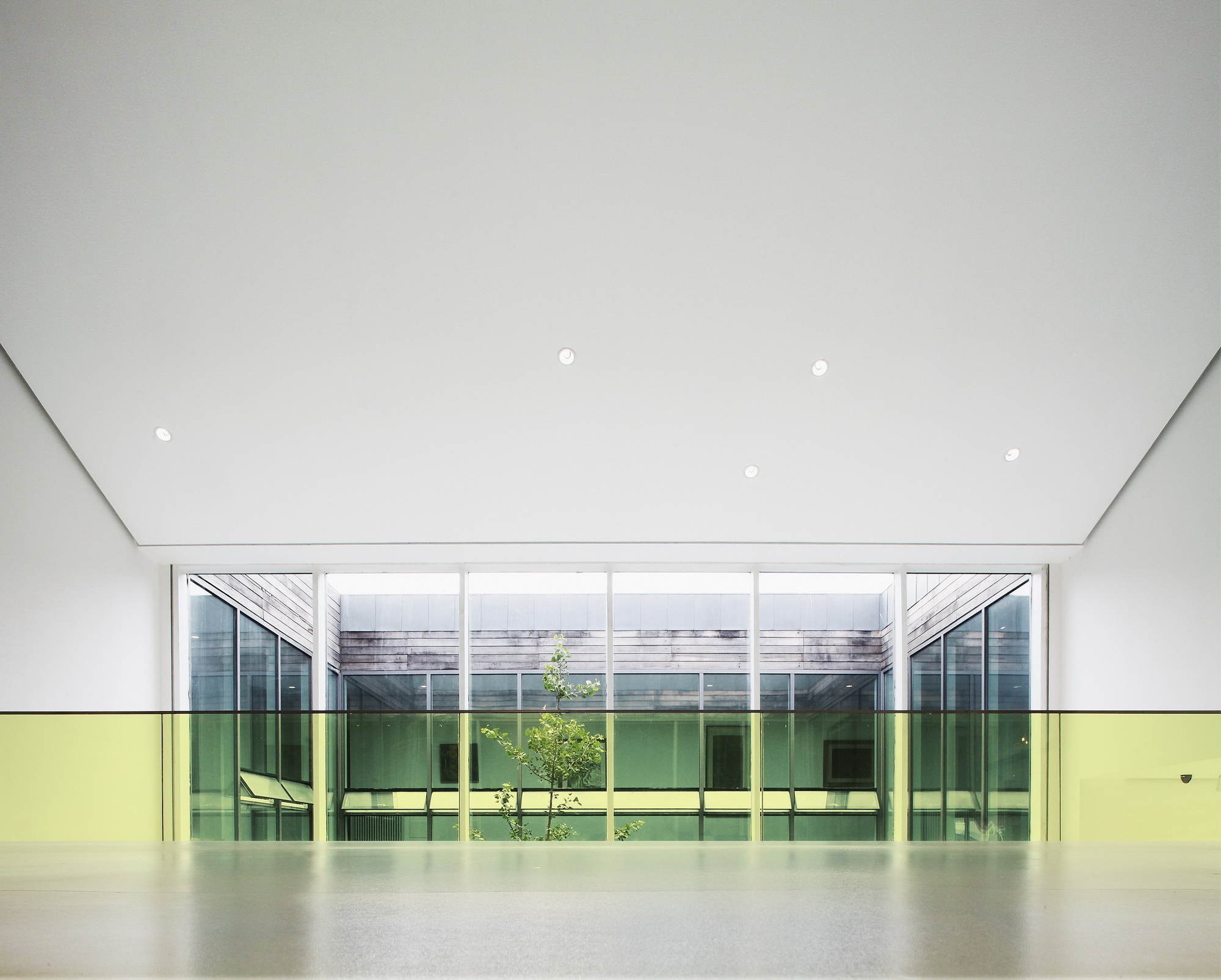 屋中院:在这个方形“砖盒子”中,通过书院、竹院及山院的插入使得其内部空间变得丰富而有诗意,形成了“屋中院”,建筑成为了一个外部严谨厚重而内部灵动的独立世界。插入的内院像灯笼一样点亮着整个室内空间,自然光给建筑带来了无限的戏剧性。这是在中国传统的空间意识、文化意识及当下价值观的前提下去改变一些规则,营造一个东方式的内部空间。