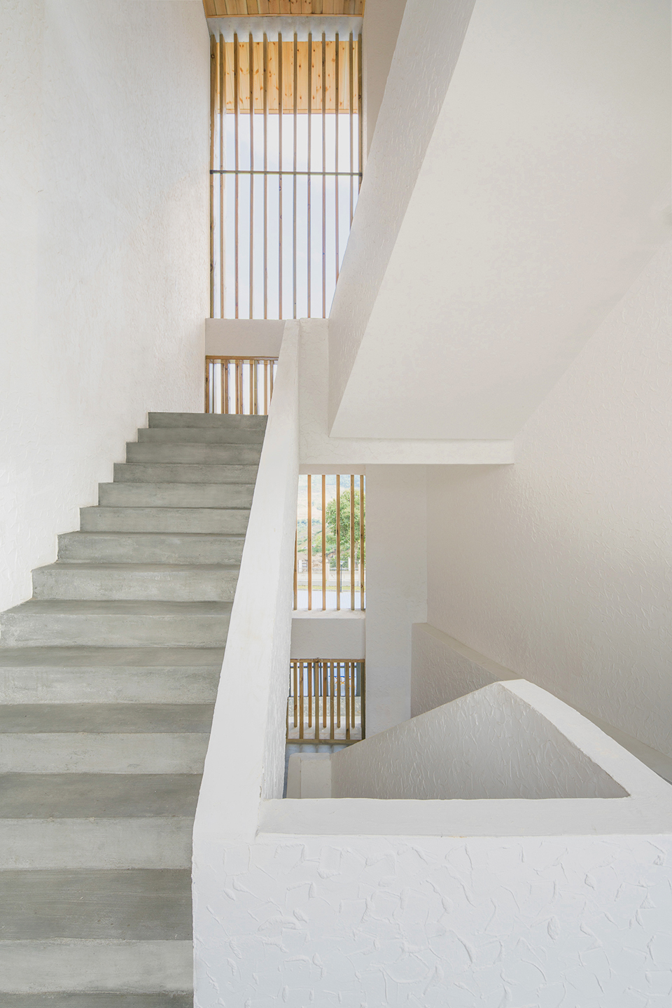 这次远程介入的探索,从选择当地松木、黏土砖和石材开始,以最简单经济的方式进行现场施工,呈现质朴原初的砖混建筑结构建筑。设计细节充分尊重当地民族文化特色,将门巴族、珞巴族传统文化元素与现代建筑语汇相融合,利用素朴的建筑语言表达毫无矫饰的建筑内涵。