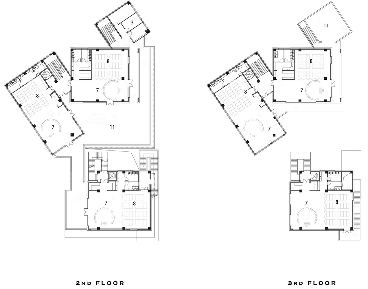 项目位于西安市西三环内侧,处于西咸新区发展轴线上。建设用地狭长且不规整。受用地限制,建筑体量势必打破常规思维。设计师通过多轮的体量分析,从积木推积散落所形成的随机形态中提取出设计灵感,通过多个不规则体块组合,构成自由灵动的建筑空间。