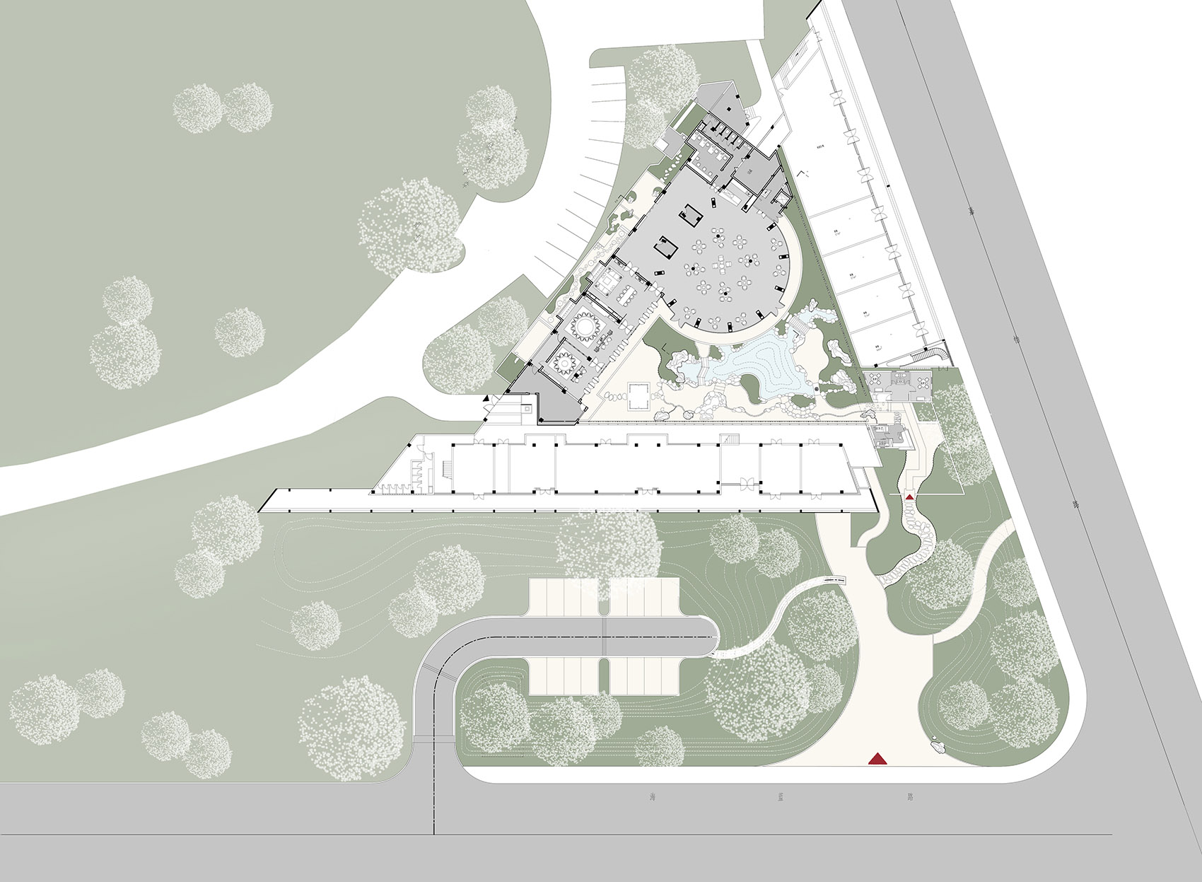 我们希望建造一个园子,向七十年代的上海街道公园致敬,向当地的园林历史致敬。让园子和建筑彼此合为一体。建筑和园子的总体一起才算是建筑学的。