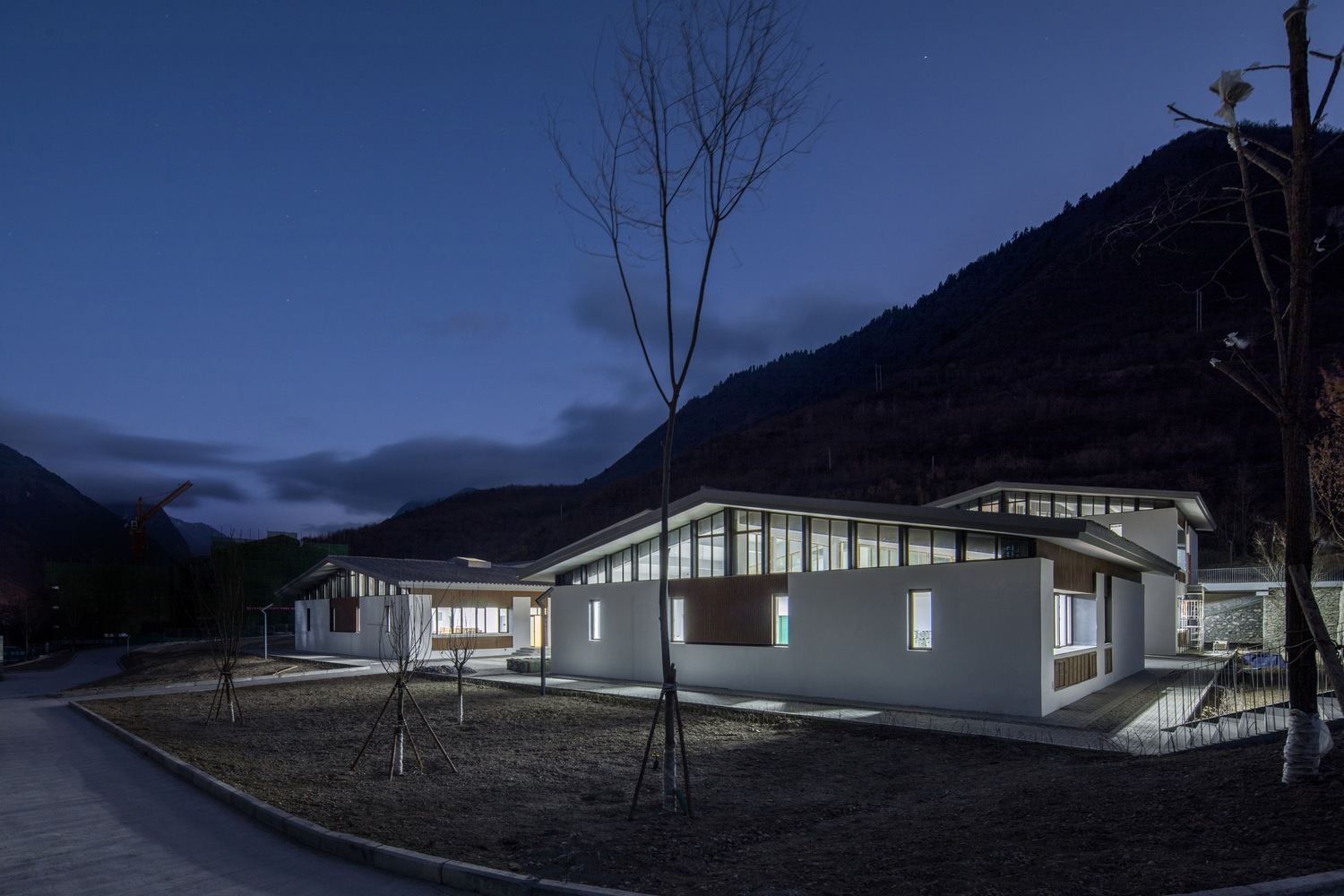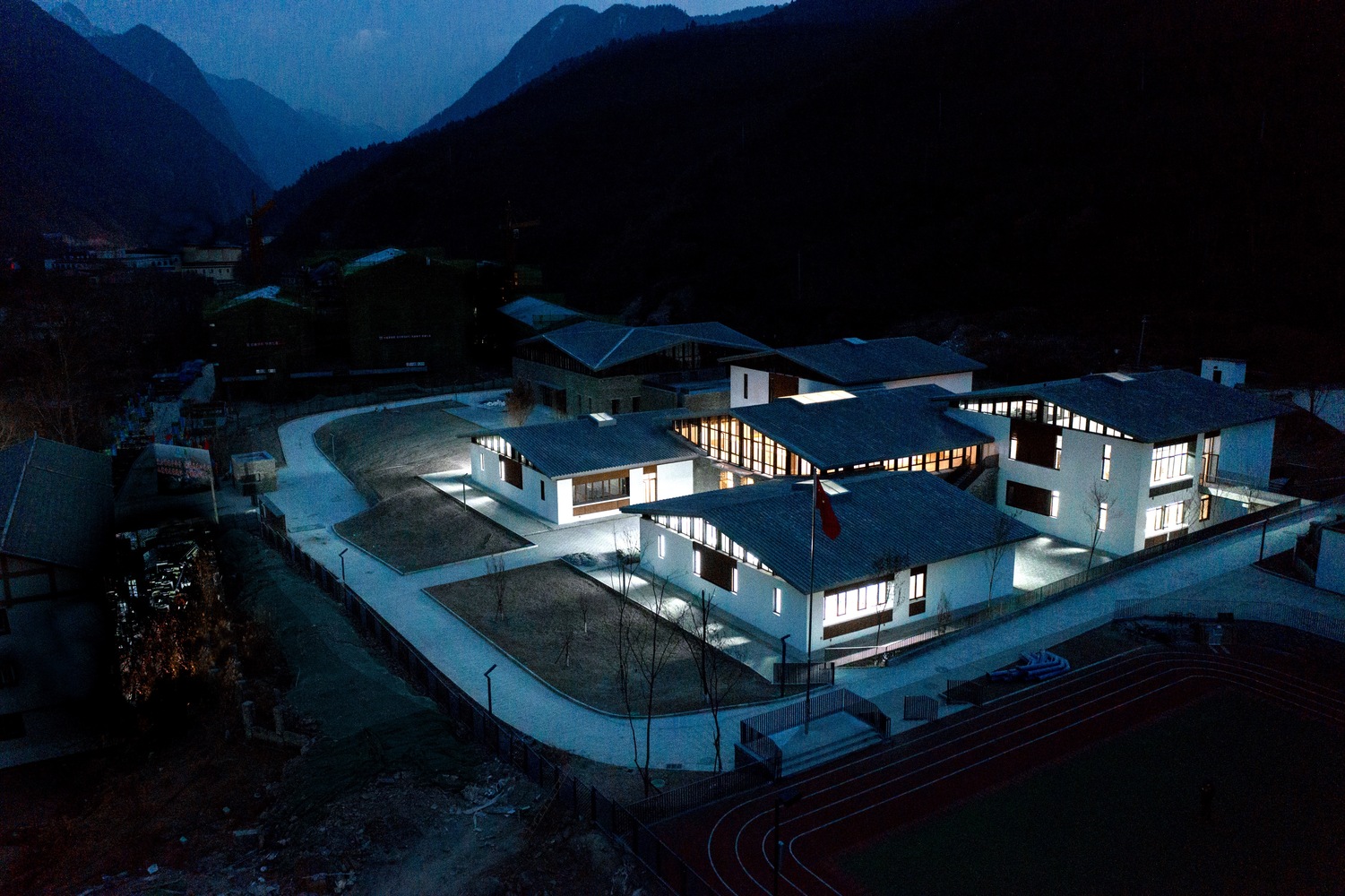 原漳扎镇小学在地震中损坏,灾后重建规模为12班学校。项目设计需要在工期短、造价紧张的条件下,满足当地教育的需求,并回应特殊的人文与气候地域环境。