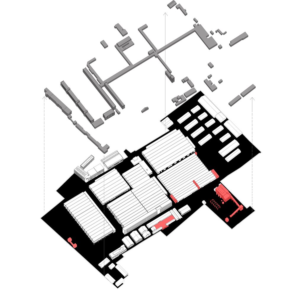 不同于一般的城市街区,工业建筑厂区的布局只需要保证正常的工艺流程和管理需要即可,所以建筑之间呈现出接踵摩肩的高密度共存状态。如何重新利用这种直白的“密度”,就成为最终确定改造策略的关键。在改造设计中,针对不同时期的建筑采用了不同的改造设计策略和方法。