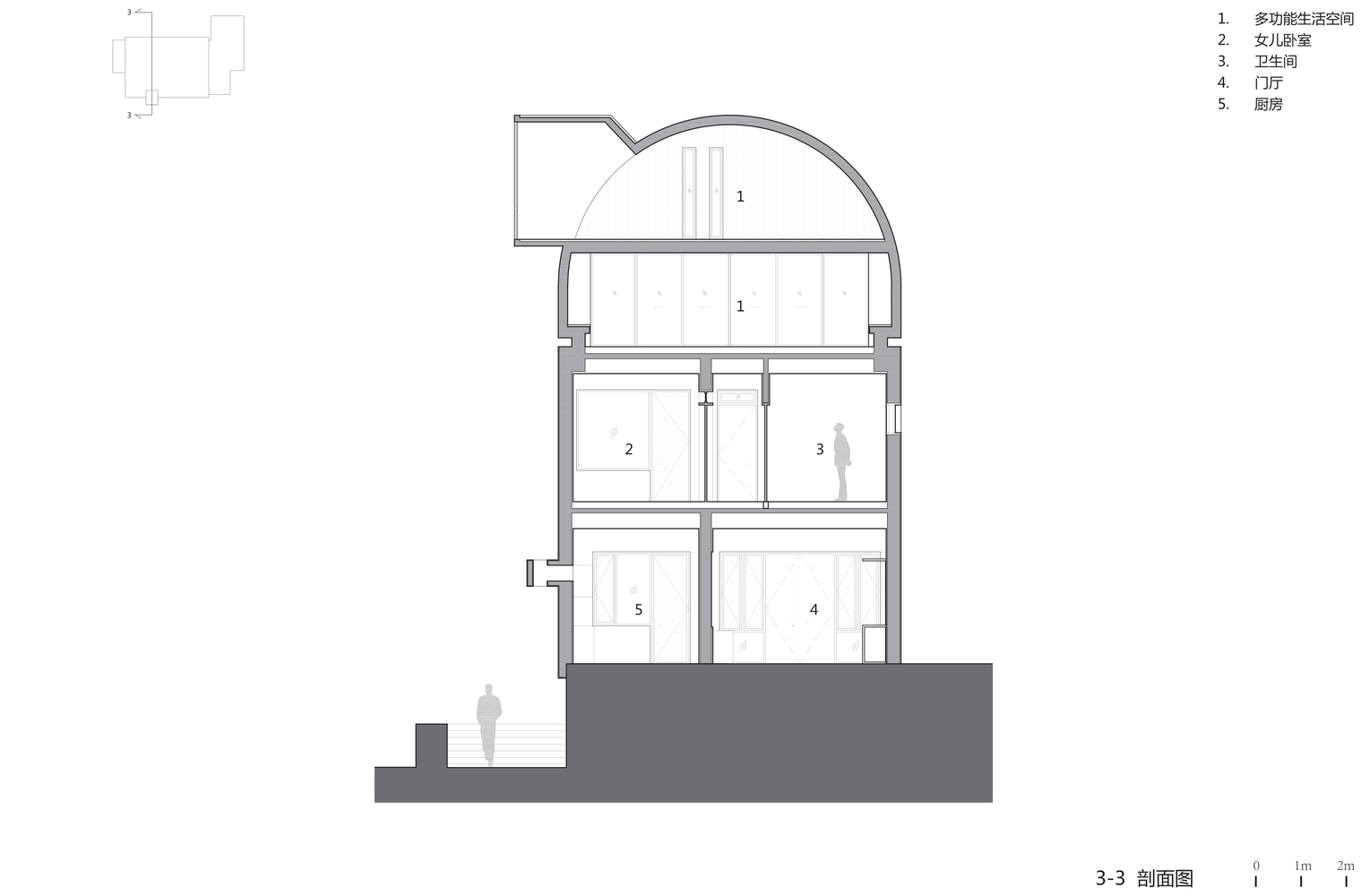 改造后的船长之家于村落“既融入又跳出”:拱自身具备谦卑、内敛的形态不给人以过分侵略或支配的感觉,其曲线形态又区别船长之家于周边任何一个建筑。最终,希望我们的改造给一家人提供更多有质量的生活空间,赋予他们生活的尊严,同时也能成为他们家庭情感的载体。
