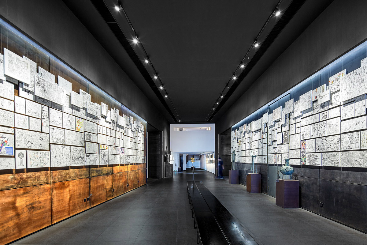 具有原始肌理的墙体和纯净的展厅相叠加构成建筑的雏形,经过功能、动线与美感等诸多因素间的反复协调推敲,建筑的造型最终确定。建筑的辅助功能如楼梯、卫生间等全部隐藏于浑厚的“墙体”中,在确保所有展厅空间高纯净度的同时,又使建筑造型的层次变得丰满。