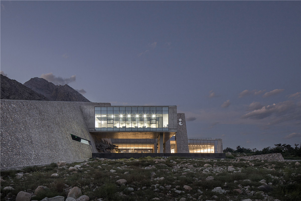古老的岩画激发韩美林先生的艺术灵感,亦给予设计团队最大启示。我们希望这座艺术馆像岩画遗迹一般,既表达人类的智慧,又与大自然融为一体。以一座地景般的建筑在天、地、山、人之间达成精神的连接,比雄壮的山体相比,它以恰当的尺度、体量和线条表达出人的存在感。